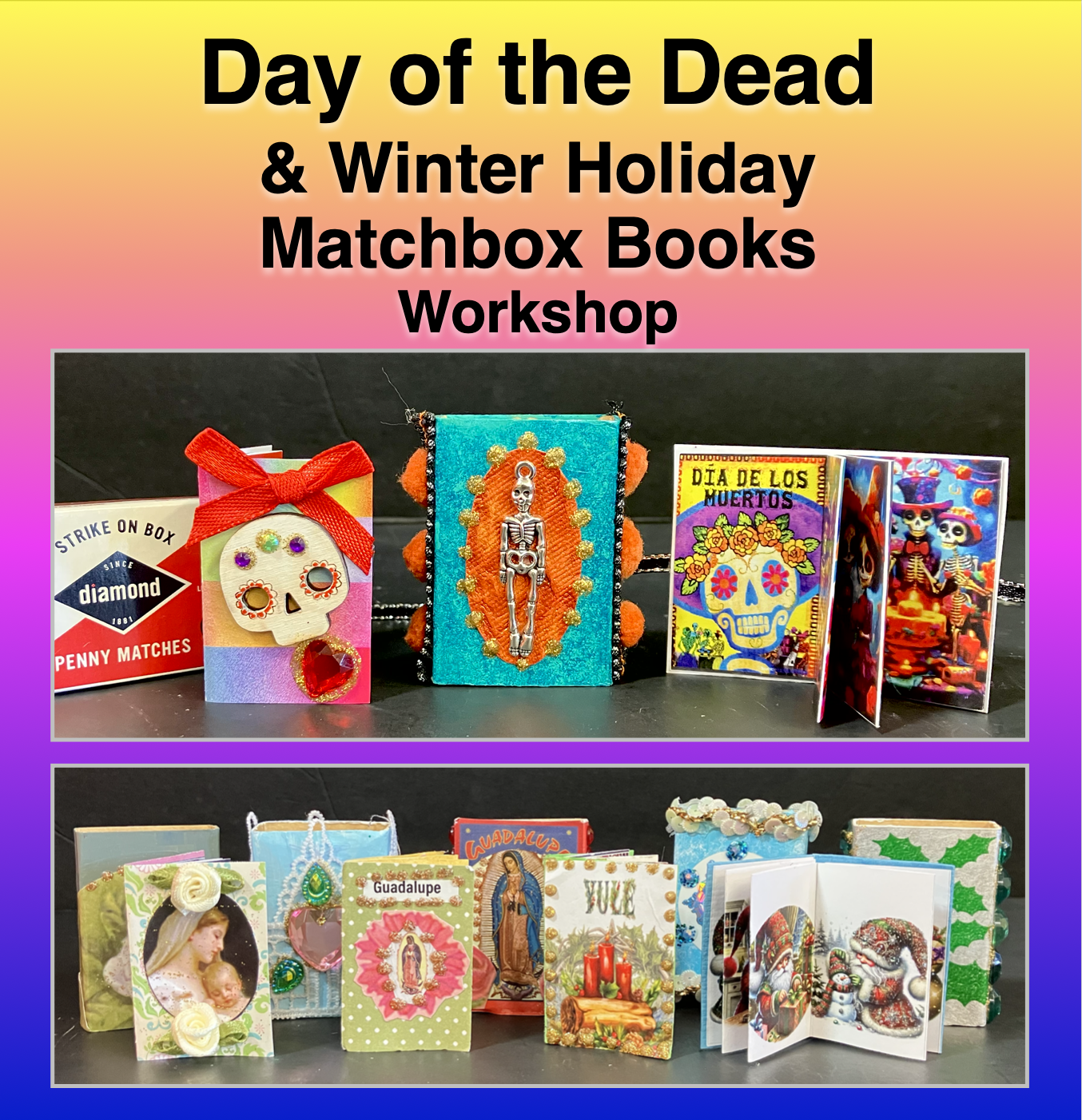 Create whimsical mini matchbox books in this joyful 2.5-hour workshop celebrating Day of the Dead and Winter Solstice, perfect as ornaments, collectibles, or heartfelt gifts.